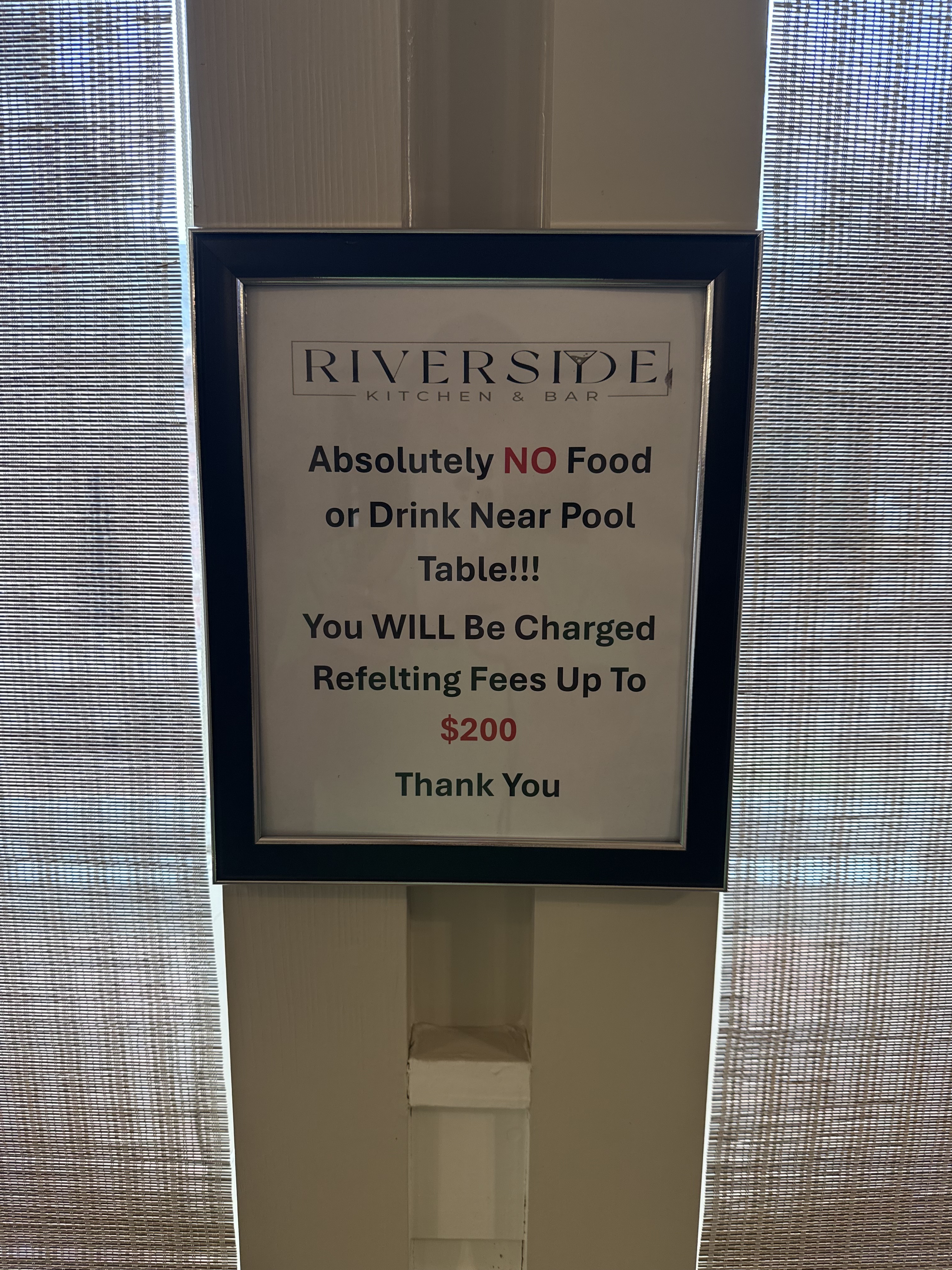 We here at Riverside Kitchen and Bar are proud to announce the addition of our brand-new gaming room!!! Complete with a brand-new set of three steel tip dart boards, brand new pool table, and rings toss game! (Thank You Moffatt Family for the Ring Game)